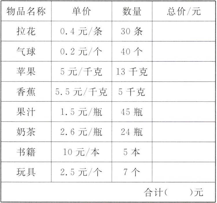 3. 购物计划清单。估一估,算一算,大约需要多少元?