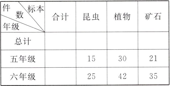 (4)六年级一共采集了 102 件标本。(答案不唯一)