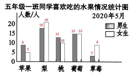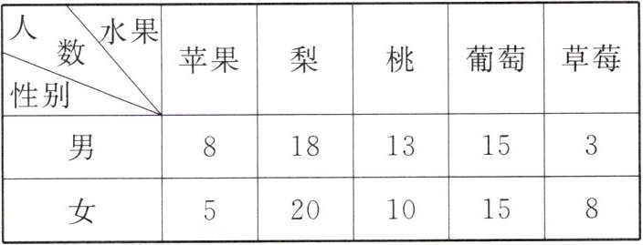 (4)发现男生和女生最喜欢吃葡萄的人数相等。