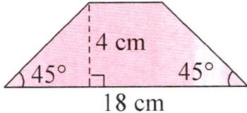 6. 在下图中,梯形的下底是18厘米,高是4厘米,两个底角都是45°,求梯形的面积。