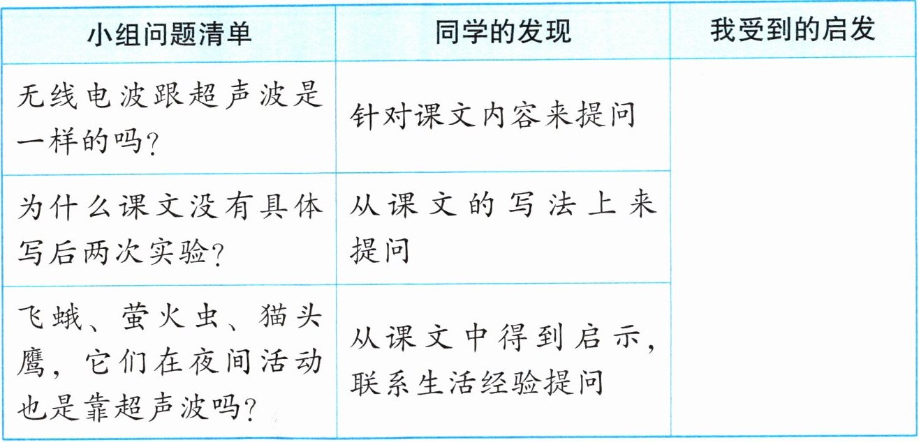 二 认真阅读《夜间飞行的秘密》,根据小组问题清单和同学的发现,记录你受到的启发。