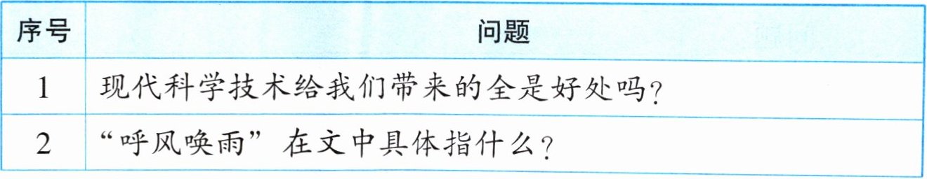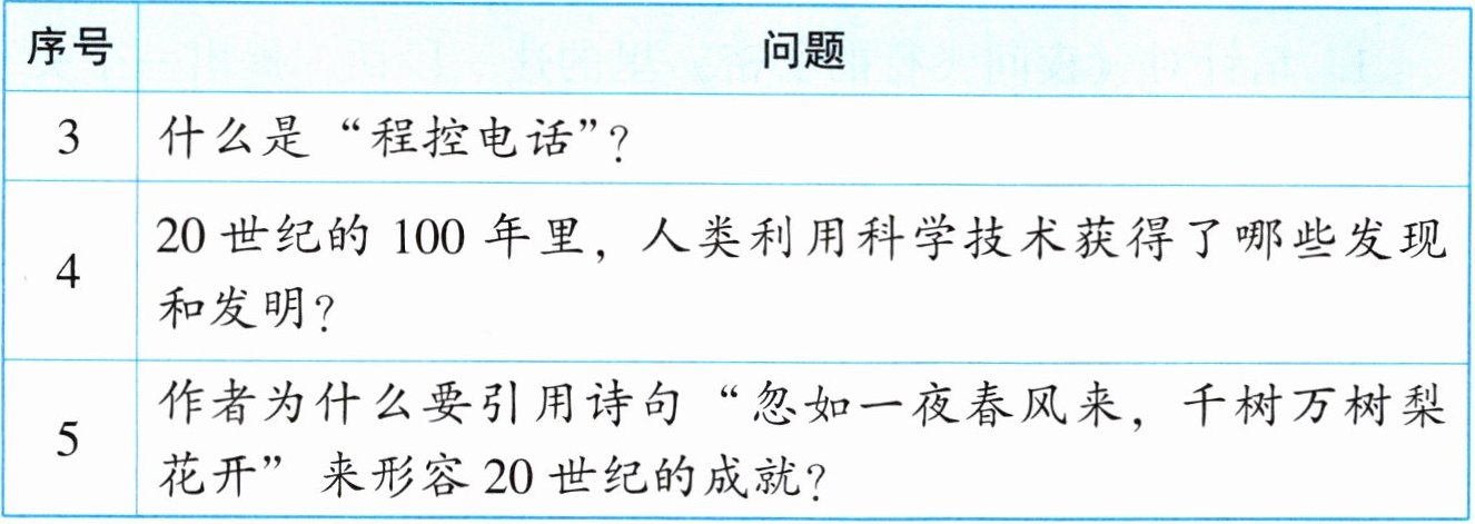 三、下面是一个小组阅读《呼风唤雨的世纪》后整理的问题清单,请你依据此清单回答问题。