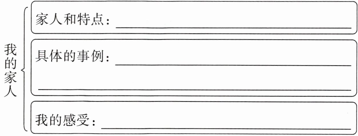 三、写作与分享。完成习作,并把作品读给家人听,请他们来评一评。