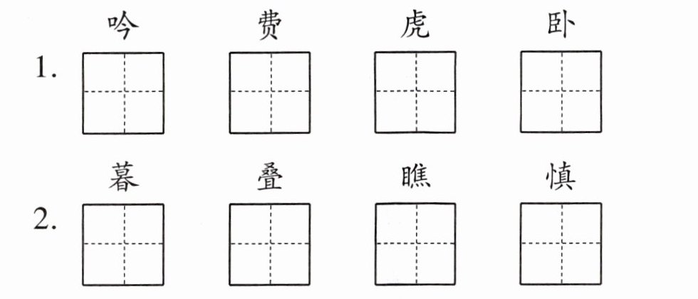 一、第1组生字有个别笔画容易写错,请认真观察后正确书写。第2组生字横画较多,请注意书写时做到横画等距。