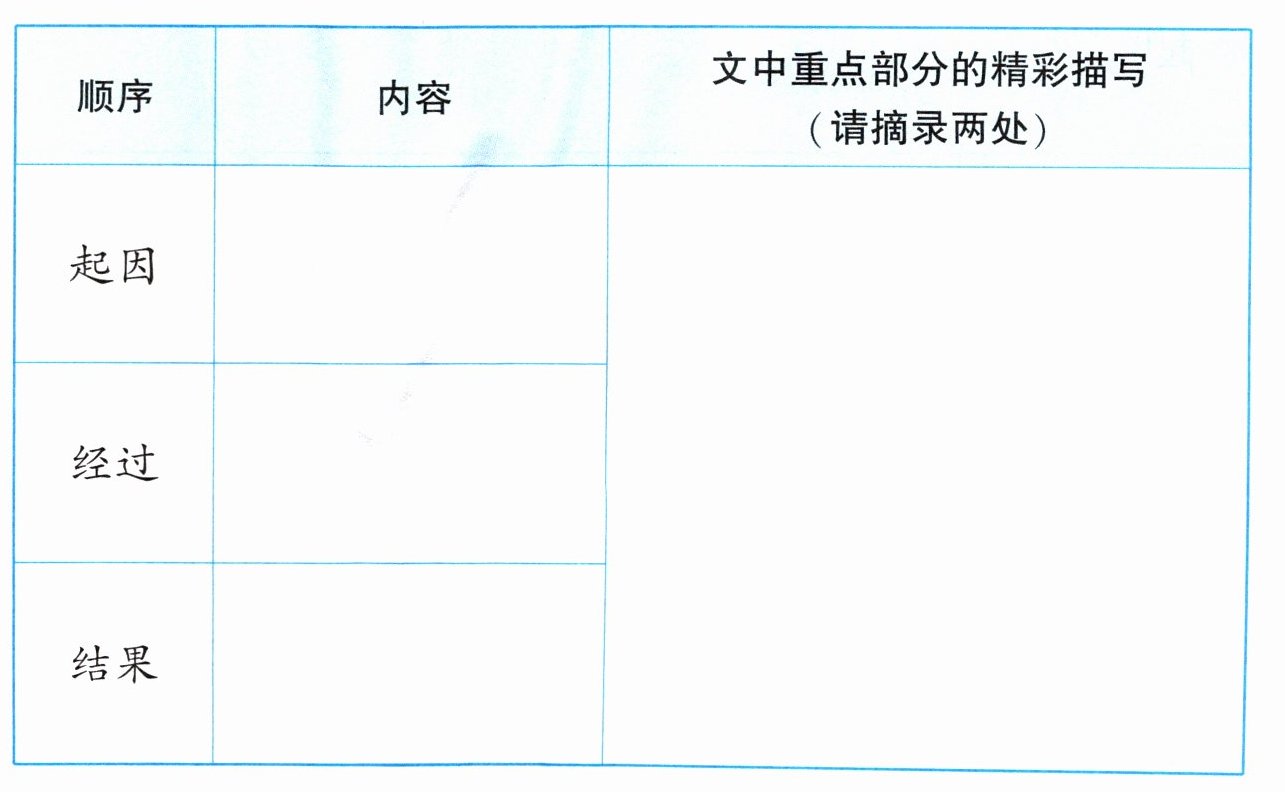 2. 作者是怎样把这件事写清楚的呢?阅读选文,完成以下表格。