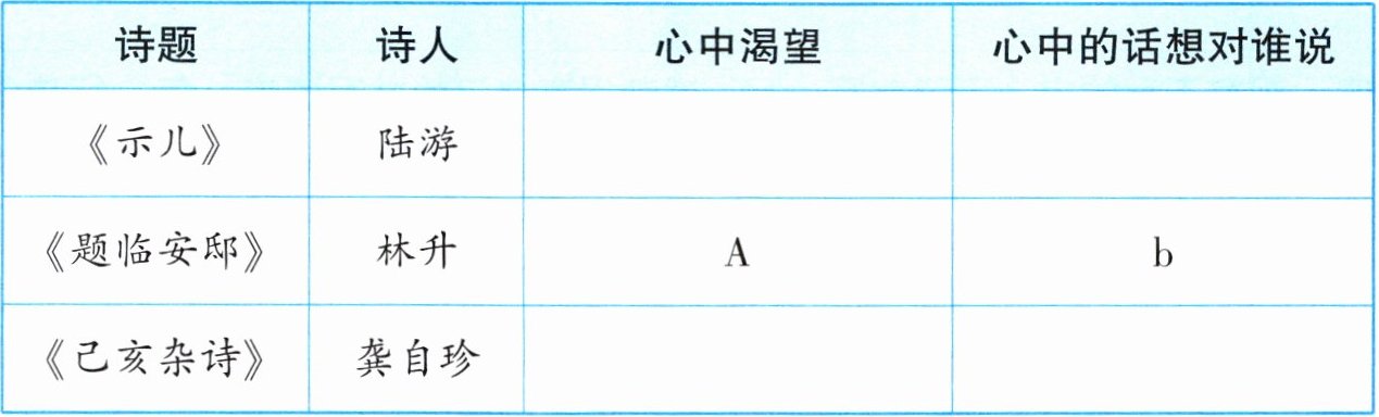 1. 读懂诗句表达的意思,体会诗人心中的期盼。请根据提示,完成下表。(填序号)