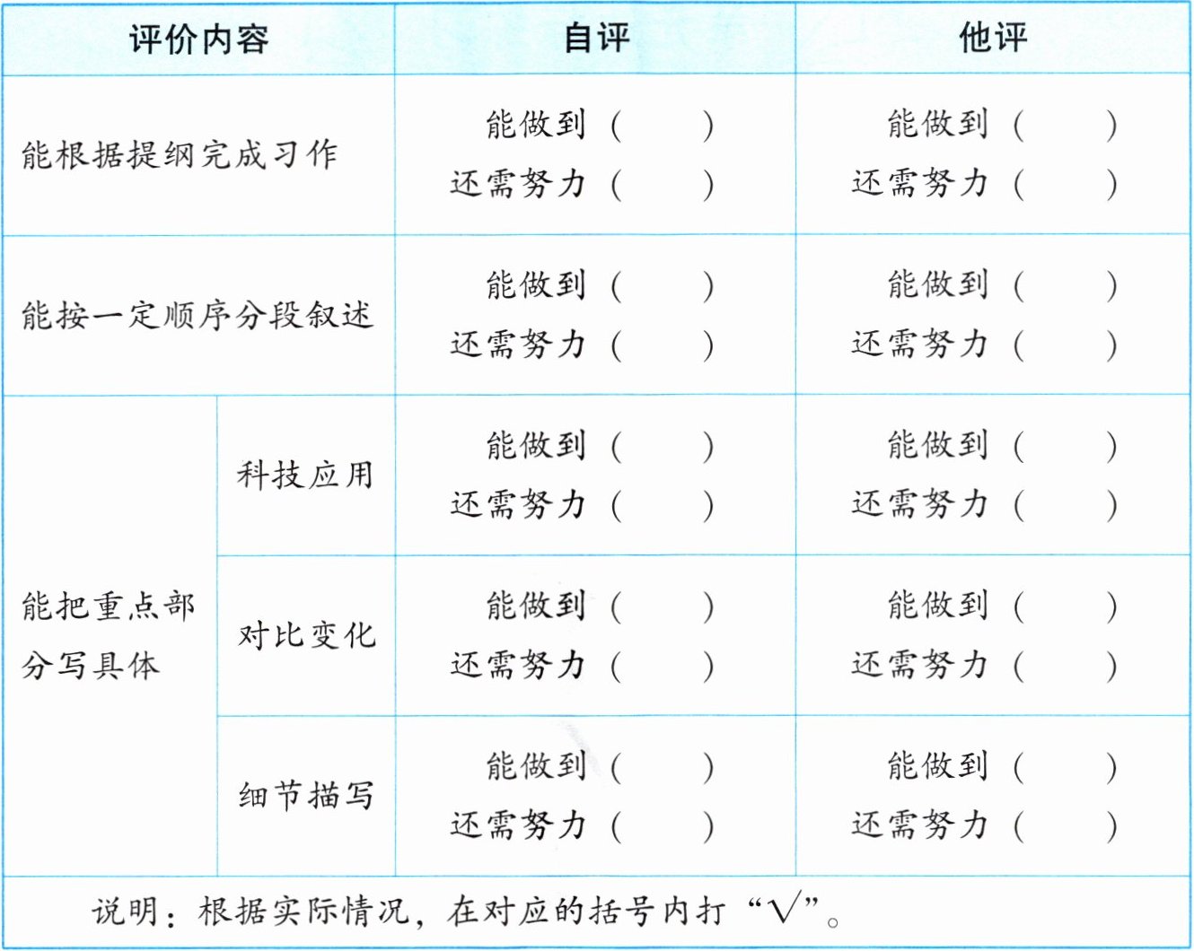 |能把重点部分写具体|科技应用|能做到( )还需努力( )|能做到( )还需努力( )|