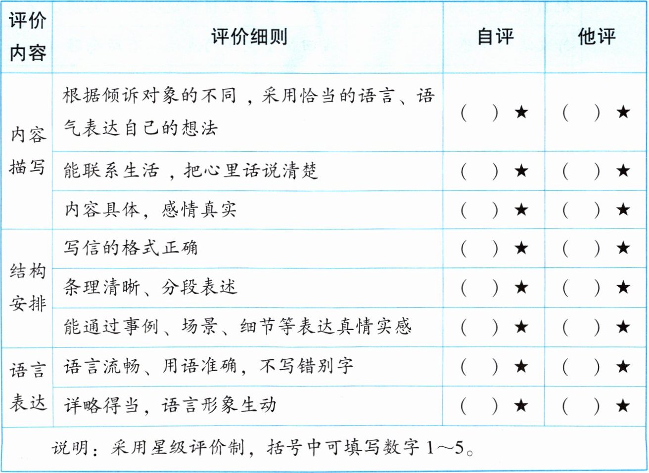 |内容描写|根据倾诉对象的不同,采用恰当的语言、语气表达自己的想法|( )★|( )★|