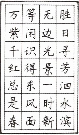 四、照样子写一写《春日》一诗,注意行款整齐、布局合理。(另附纸书写)