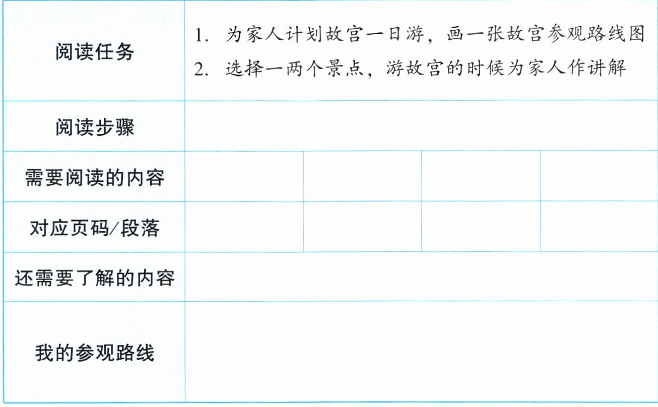 阅读任务 1. 为家人计划故宫一日游,画一张故宫参观路线图