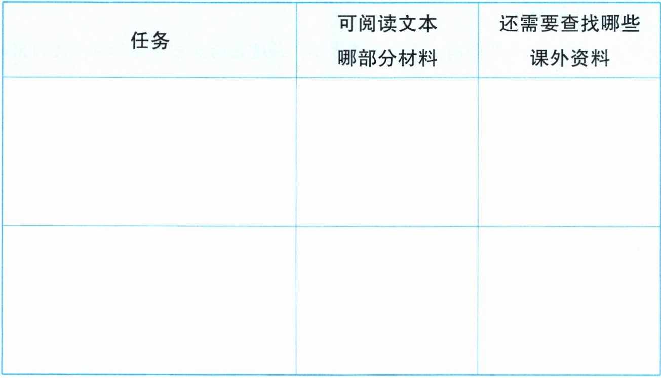 |任务|可阅读文本哪部分材料|还需要查找哪些课外资料|