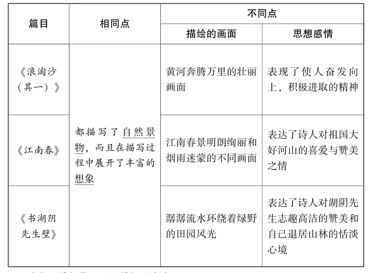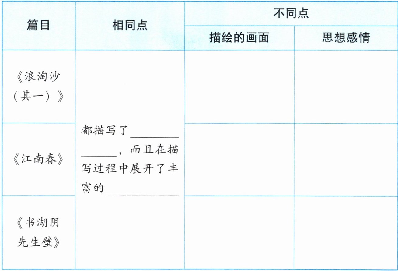 一、比较三首古诗的相同点和不同点,完成表格。