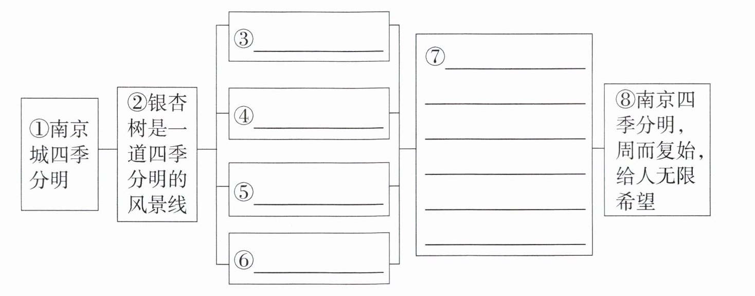 1. 根据每段主要内容,围绕“四季分明的南京”补全全文结构图。(10 分)