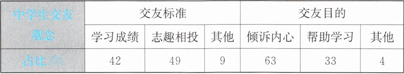 4. 阅读下面中学生交友观念调查统计表,写出你从中得到的两条信息。(4分)