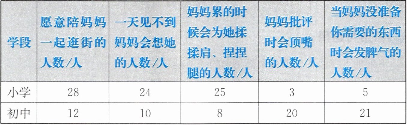 (1)示例:随着学生年龄的增长,关心妈妈的人越来越少,对妈妈顶嘴、发脾气的人却越来越多。