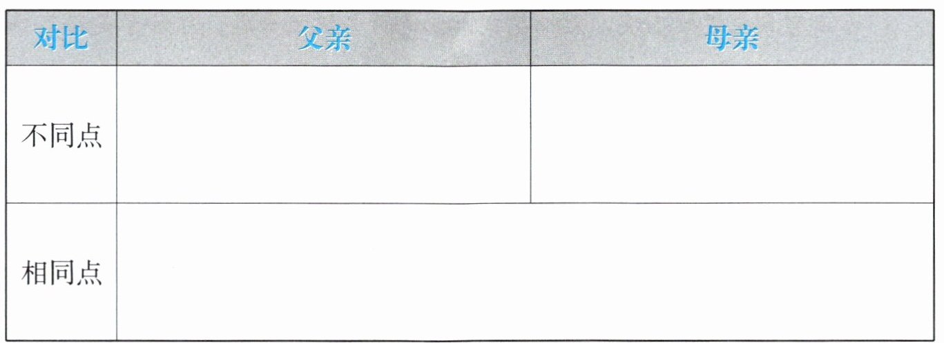 4. 从文段中可以看出父亲母亲性格特点有什么异同?请填写表格。