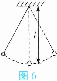 6. 将一细绳上端固定,下端系一金属螺母,做成摆长为l的摆(如图6所示)。让螺母在竖直面内小幅度往复摆动。