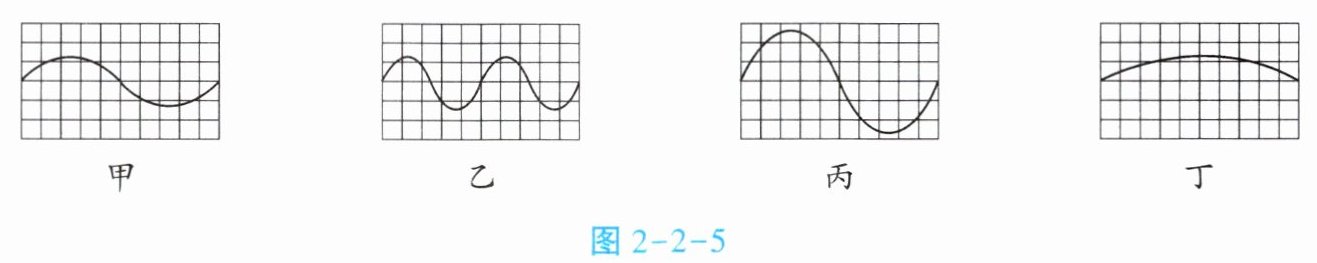 7. 将话筒接在示波器的输入端,用力敲击音叉A使其对着话筒发出声音,示波器显示的波形如图2-2-5甲所示;如果敲击另一个频率更高的音叉B,示波器显示的波形可能是图______。