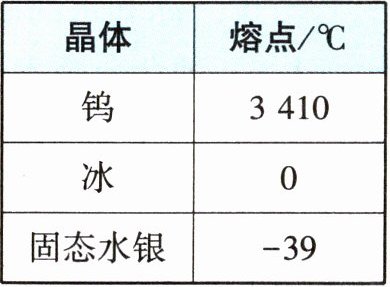 1. 右表列出了几种晶体在标准大气压下的熔点。
