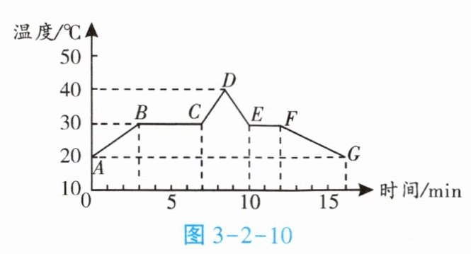 2. 将某物质放入试管中,再将试管放入装有水的烧杯中,如图3-2-9所示。图3-2-10所示是该物质从固态变成液态再变成固态的过程中温度随时间变化的图像。在标准大气压下,BC、EF段出现了固液共存状态。AD段持续加热,D时刻撤去酒精灯和装有水的烧杯。根据图像回答下列问题。