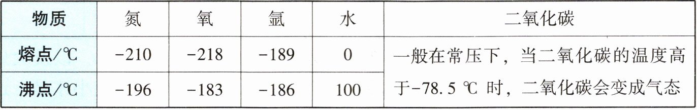 在标准大气压下,用电子温度计测量这层霜的温度,根据下面的小资料判断一下,在这样的温度下,空气中哪些物质不可能处于固态?