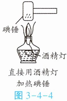 自然界中还有很多物质会出现升华、凝华现象。小明阅读完课本第777页的内容后,知道固态碘吸热后能升华成碘蒸气。于是他设计如图3-4-4所示实验观察固态碘的升华现象,实验过程中碘锤内同样有紫色碘蒸气生成。