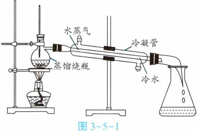 解:1. 蒸馏过程中水先发生汽化(液态变为气态),后发生液化(气态变为液态)。