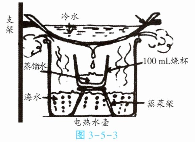 材料:电热水壶、用食盐配制的一定浓度的盐水(模拟海水)、蒸菜架、100 mL烧杯、量筒、可自选生活中常见的原材料(制作冷凝装置)。