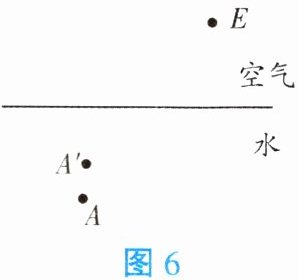 6.如图6所示,眼睛E看到水中发光点A的虚像A',请画出A发出的一条光线在水面折射后进入眼睛的完整光路。