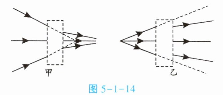 3. 要使图5-1-14中的光路图成立,应该在甲、乙两个虚线框内单独放入哪种透镜?