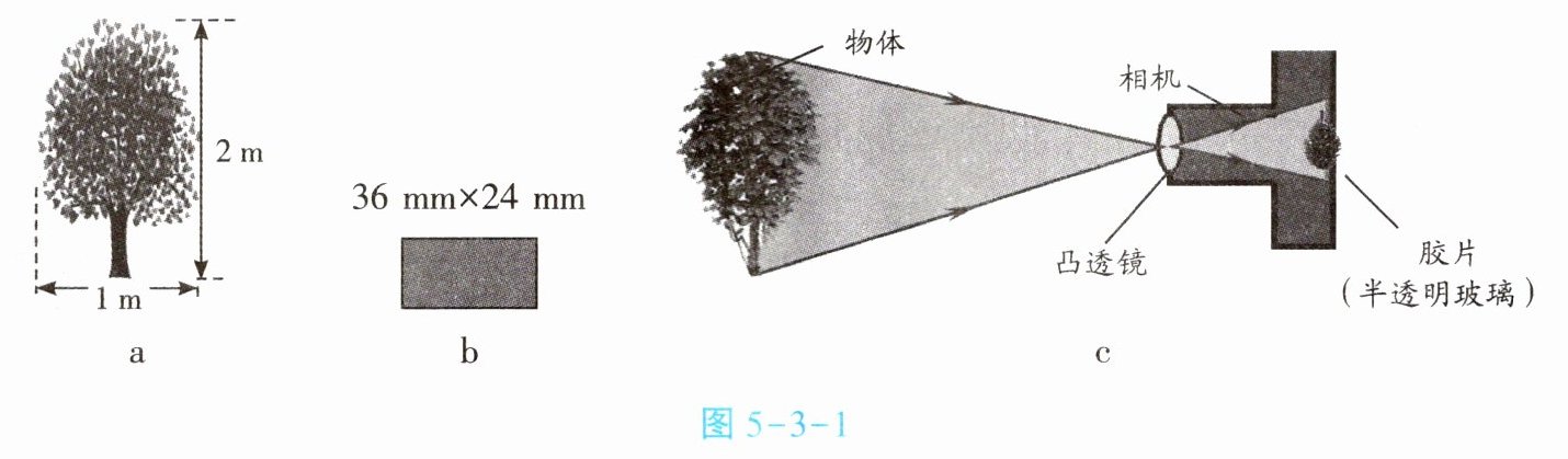 2. 用老式照相机将图5-3-1a所示的整棵树清晰地成像于图5-3-1b所示的胶片上。为达到这个目的,应该利用凸透镜的哪种成像规律?