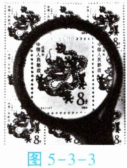 1. 小明的爷爷不能观察到邮票上图案的细节,他想让图案通过凸透镜成放大的像(如图5-3-3所示),应利用凸透镜的哪种成像规律?