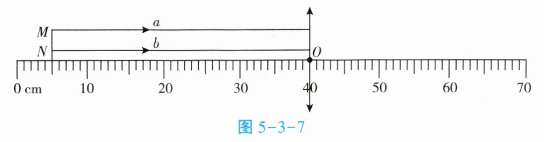 (2)小明用该透镜做实验,如图5-3-7所示,物体MN发出的两束光线a、b平行于主光轴,O是透镜的光心。