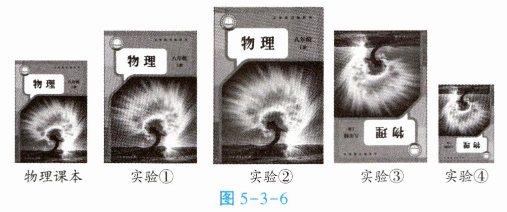 3. 放大镜是生活中常见的凸透镜,小明同学拿着一个放大镜对着物理课本看,当物距u改变时,所成的像如图5-3-6所示,结合图示以及下表中的数据回答问题。