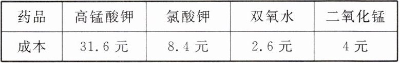 (3)根据化学试剂的市场价格,实验室制取32g氧气的常用药品的成本如表所示。