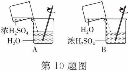 10. 用毛笔蘸取溶质质量分数为5%的稀硫酸在竹片上画画,然后把竹片放在小火上烘干,在竹片上就得到了黑色或褐色的画,一幅精美的竹片画就制成了。