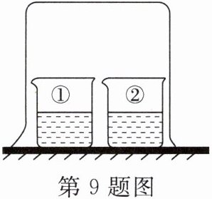9. 如图所示的实验中,小烧杯①盛的是紫色石蕊试液,②盛的是浓盐酸,片刻后,可以观察到烧杯①中液体的颜色是(