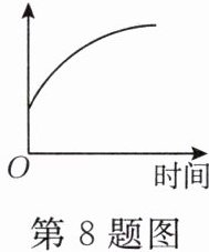 8. 某课外兴趣小组的同学,通过实验测定浓硫酸吸水性的有关数据,绘制成如图所示的图像,其中横坐标表示时间,纵坐标可以表示:①溶质的质量分数;②溶液的质量;③溶液的体积;④溶液中所含水的质量。其中正确的是(