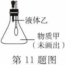11. 如图所示,锥形瓶中有物质甲,将胶头滴管中的液体乙加入锥形瓶中,若要使小气球鼓起,则下列组合中,能达成此目的的有(
