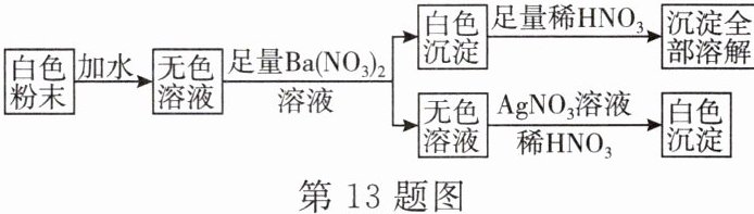 13. 有一包白色粉末,可能是由硫酸铜、氯化钠、碳酸钠、硫酸钠中的一种或几种组成,为检验其中的成分,按以下流程进行实验:
