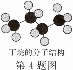 4. 家庭罐装液化石油气的主要成分之一是丁烷,其化学式为$C_{4}H_{10}$,分子结构如图所示,下列有关叙述正确的是(