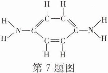 7. 染发时一般要用到一种着色剂——“对苯二胺”,它既是染发剂中最有效的成分,也是对人体健康最具有潜在危害的物质。其分子结构如图所示。下列有关对苯二胺的说法错误的是(