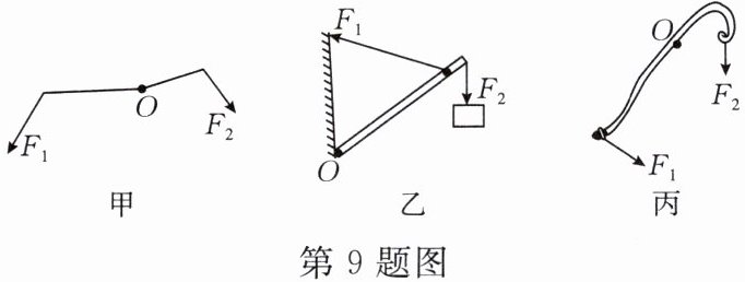 9. 如图所示,作出图中各杠杆的动力和阻力的力臂。