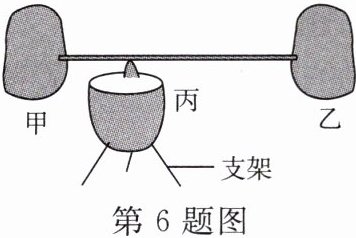 6. “推枣磨”是古代的一种平衡游戏(如图所示),即将甲、乙鲜枣用粗细均匀的细竹签串在一起搁在去除部分枣尖露出枣核的丙鲜枣上,使之保持静止。据此可推测出 (