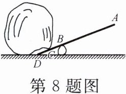 8. 如图所示,已知撬棒 $ AD = 1.2\ m $,$ CD = BC = 0.2\ m $,石头垂直作用在棒上的力是 $ 360\ N $,若要撬动石头,则施加在撬棒 $ A $ 点的力至少是