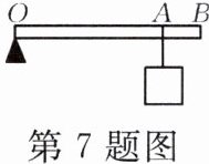 7. 如图所示,$ O $ 为一根轻质杠杆的支点,$ OA = 2\ m $,$ OB = 2.5\ m $,$ A $ 点处挂着重 $ 100\ N $ 的物体。若在 $ B $ 点施加一个竖直方向的力,使杠杆在水平位置上保持静止,则这个力的大小和方向是 (
