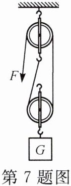 7. 用如图所示的滑轮组提升 100N 的重物,两个相同的滑轮的重力均为 20N,不计绳重和摩擦,则下列说法中,正确的是(