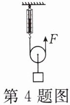 4. 如图所示,动滑轮重 2N,弹簧测力计的示数为 10N,则拉力 F 和物体的重为(