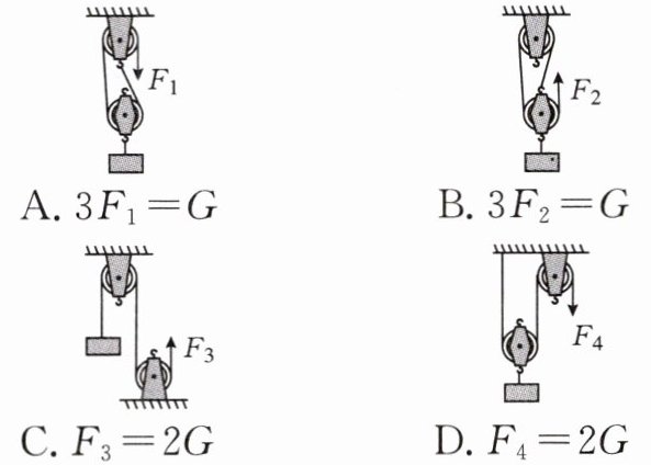 11. 如图所示,用四个滑轮组分别匀速提升重力均为 G 的物体,若不计滑轮重、绳重及摩擦,下列关系式正确的是(