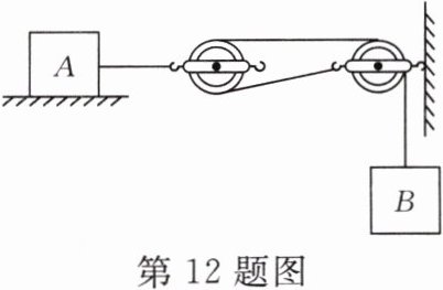 12. 如图所示,物体 A 在物体 B 和滑轮的牵引作用下做匀速直线运动。若在 A 上再施加一个水平向左、大小为 100N 的拉力 F(图中未画出),则物体 A 向左做匀速直线运动,此时物体 A 与桌面之间的摩擦力为
